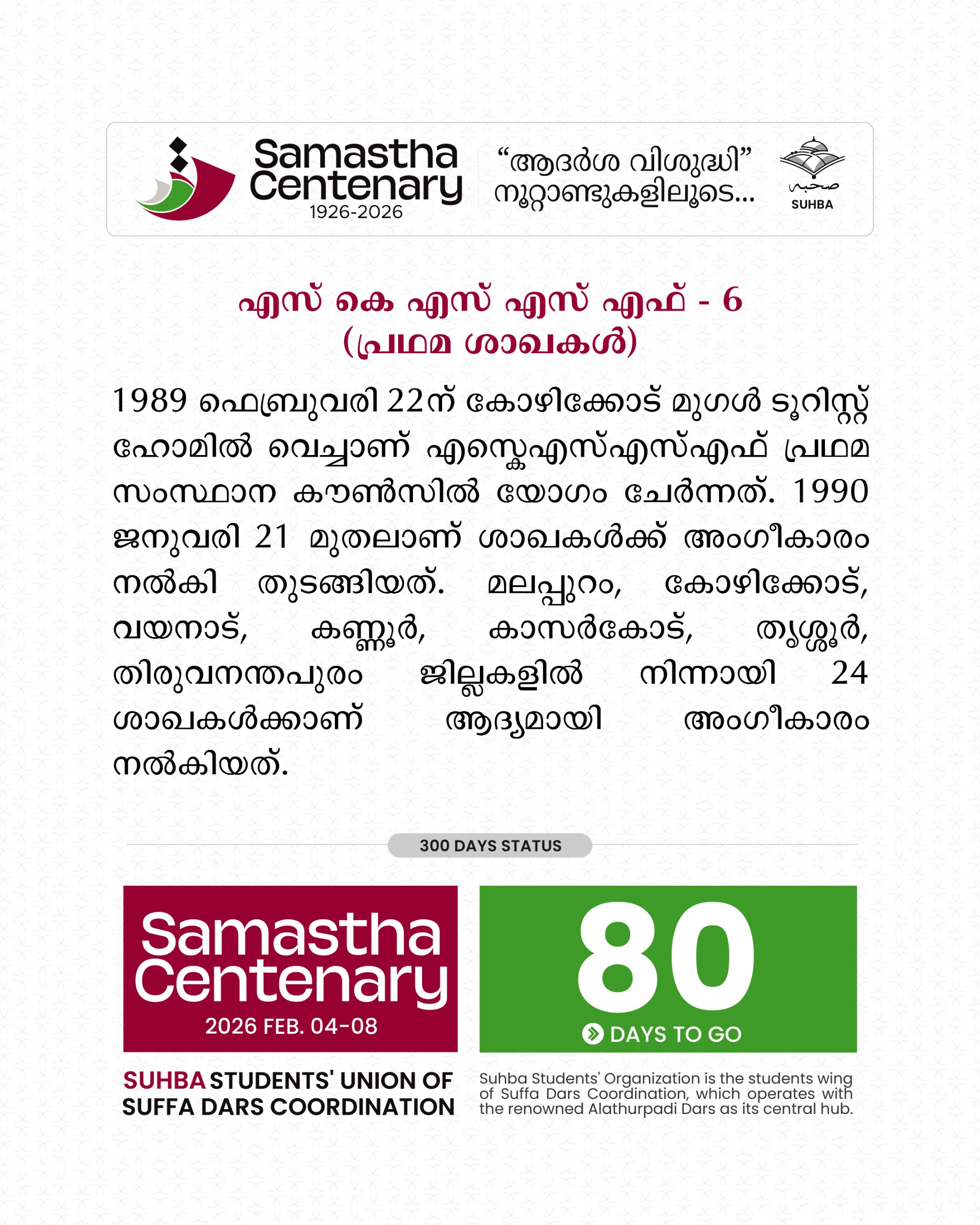 Welcome to the Samastha Centenary Conference countdown portal. Track the historic Samastha Centenary celebrationwith comprehensive News, and Updates.
