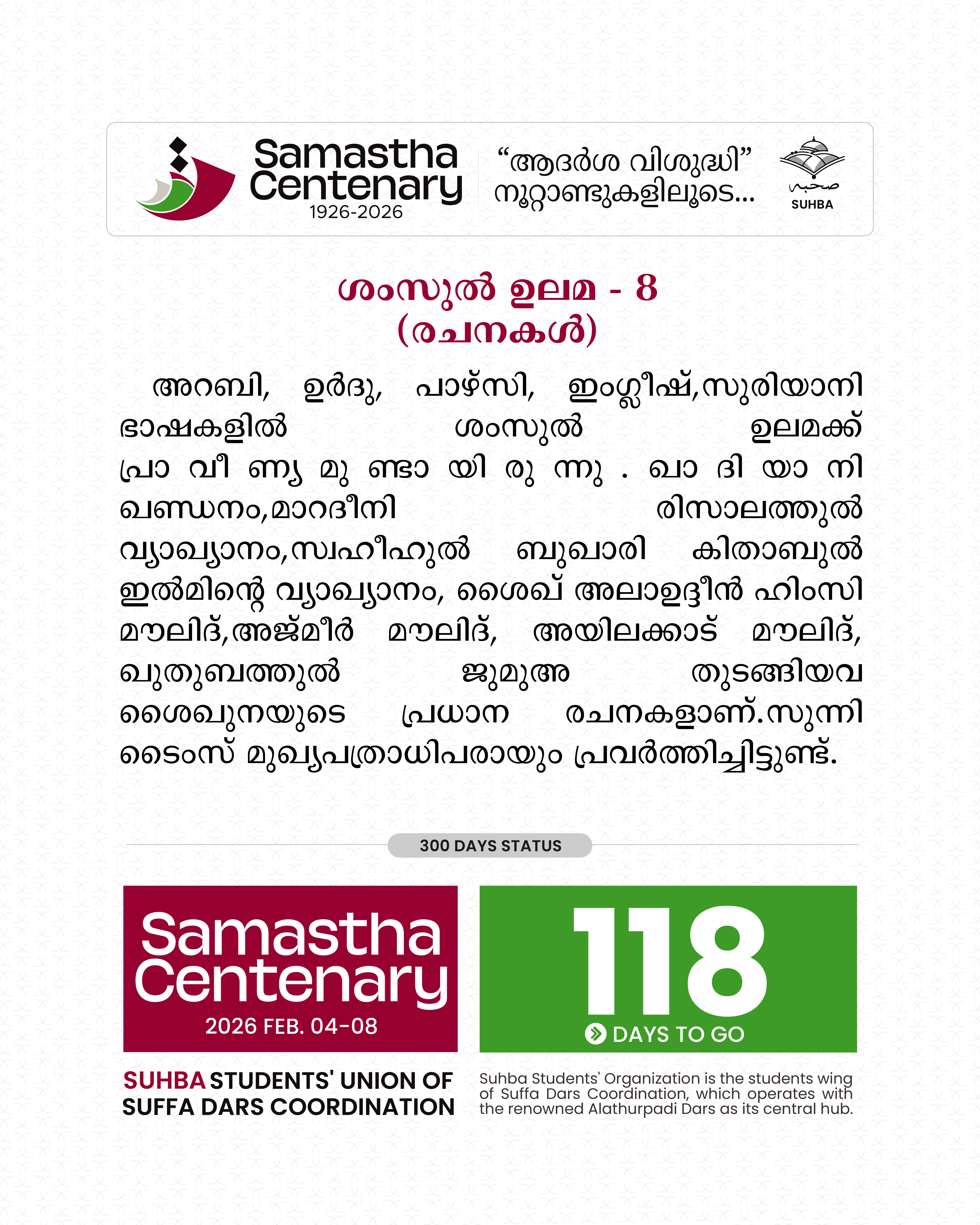 Day 119: 66 - SUHBA Countdown | Samastha Centenary Conference
