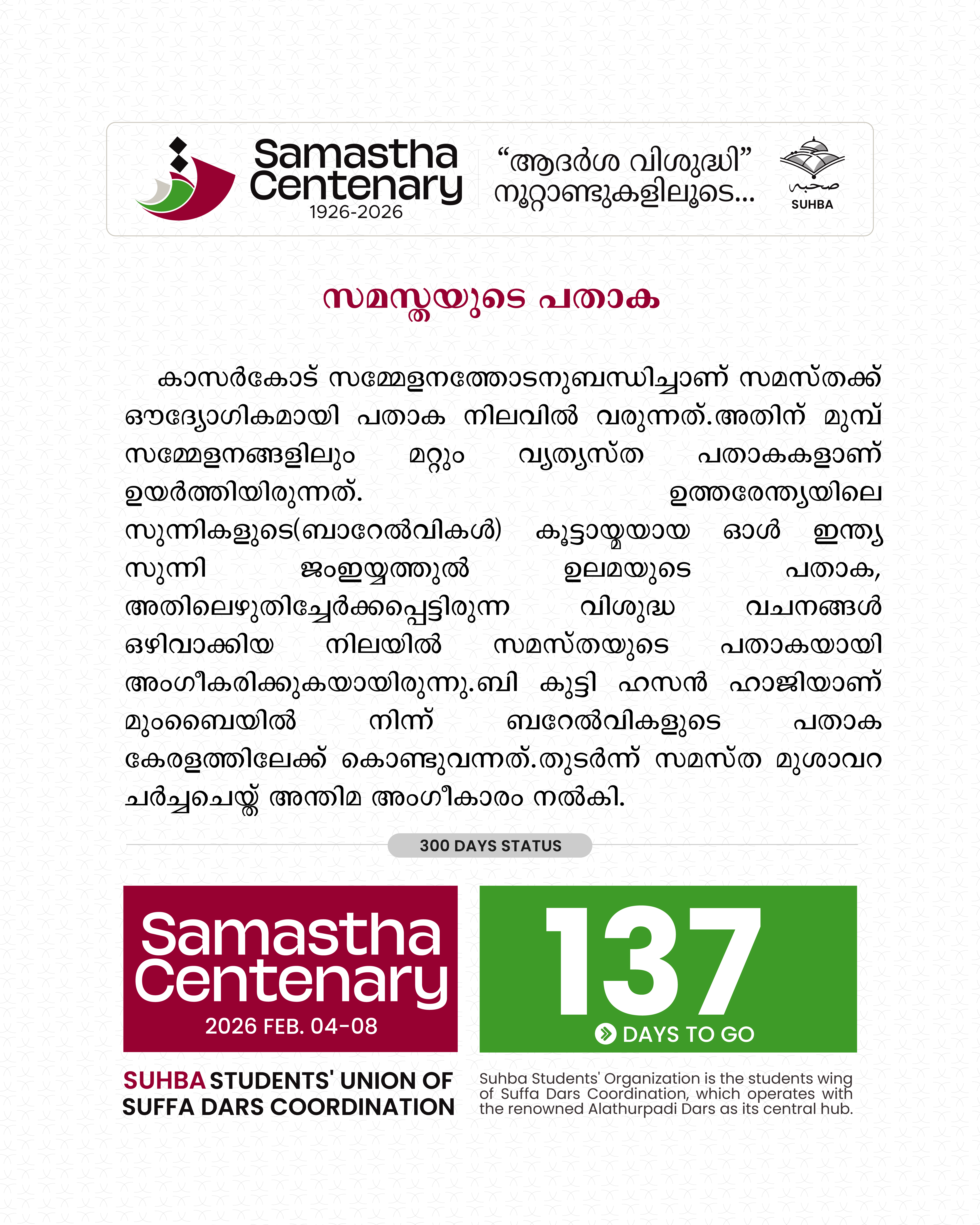 Day 138: 444425 - SUHBA Countdown | Samastha Centenary Conference