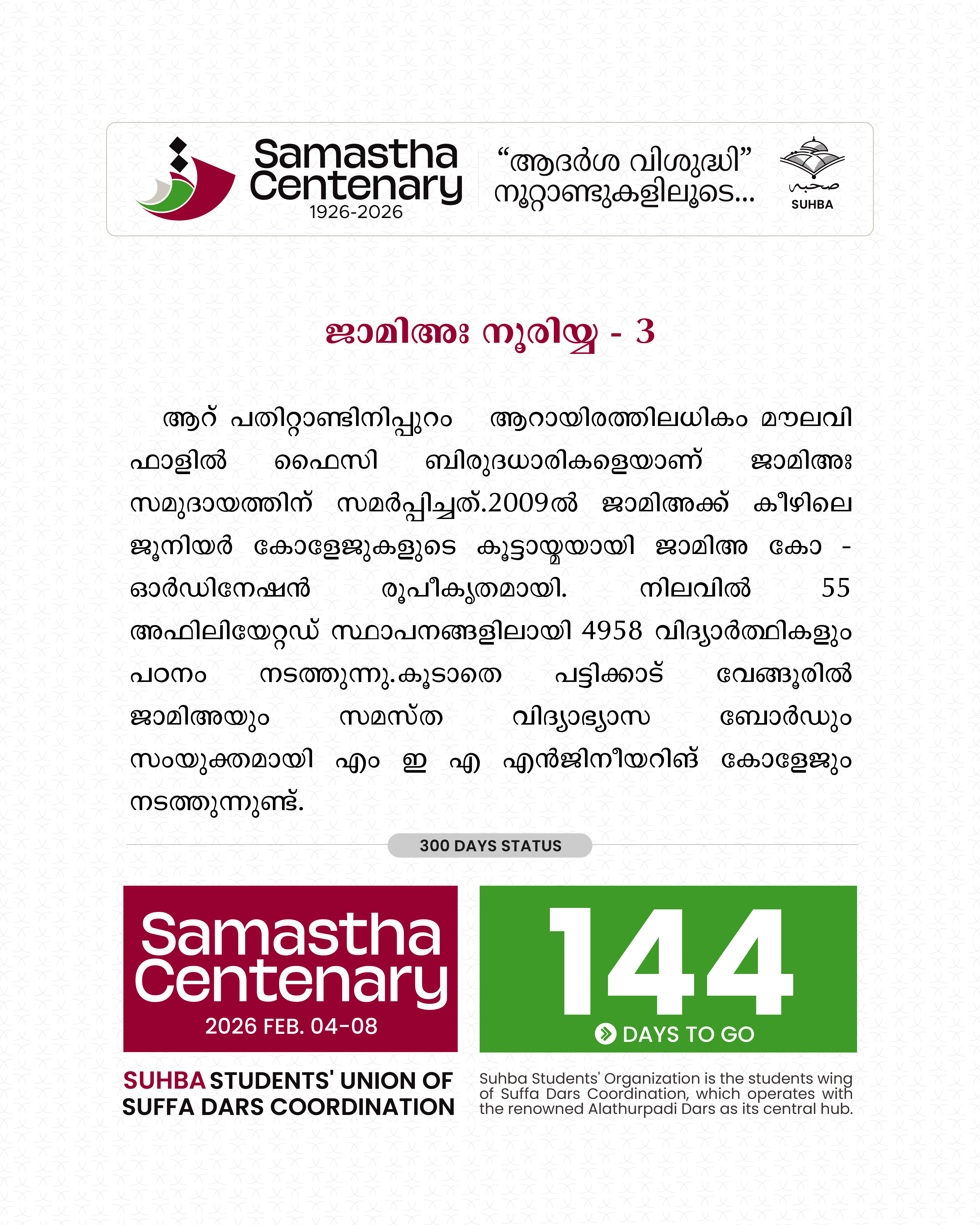 Day 145: 88 - SUHBA Countdown | Samastha Centenary Conference