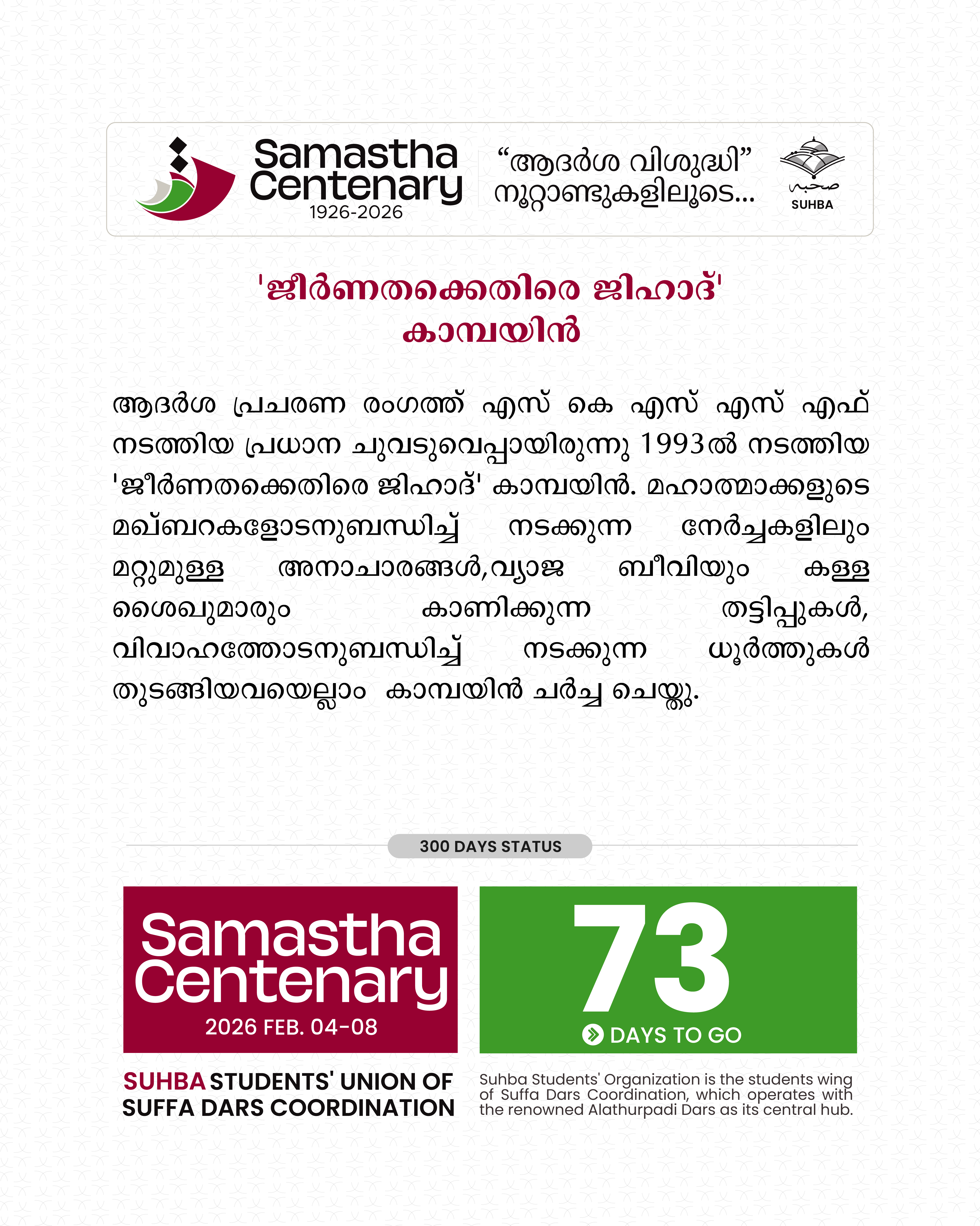 Day 74: . - SUHBA Countdown | Samastha Centenary Conference