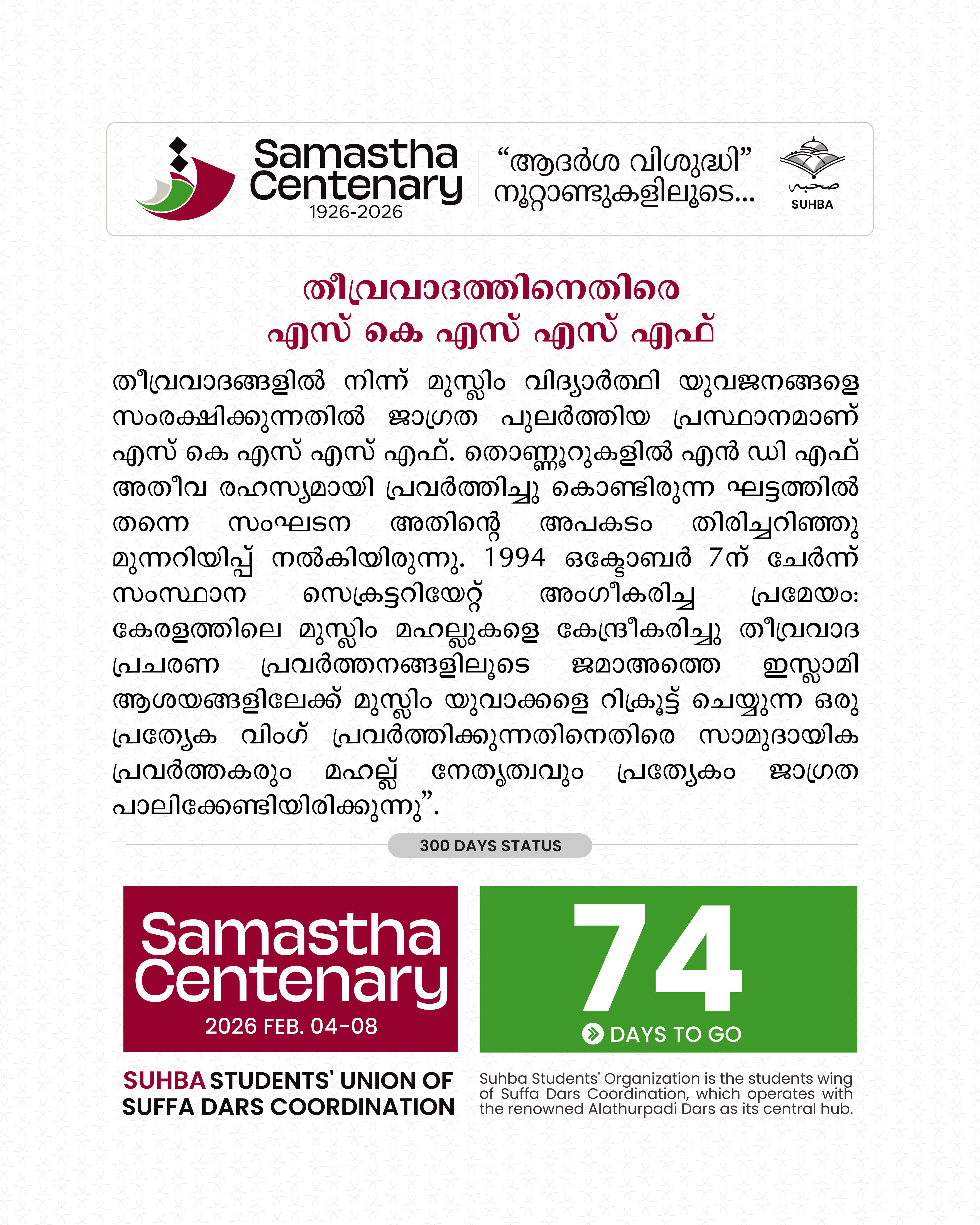 Day 75: . - SUHBA Countdown | Samastha Centenary Conference